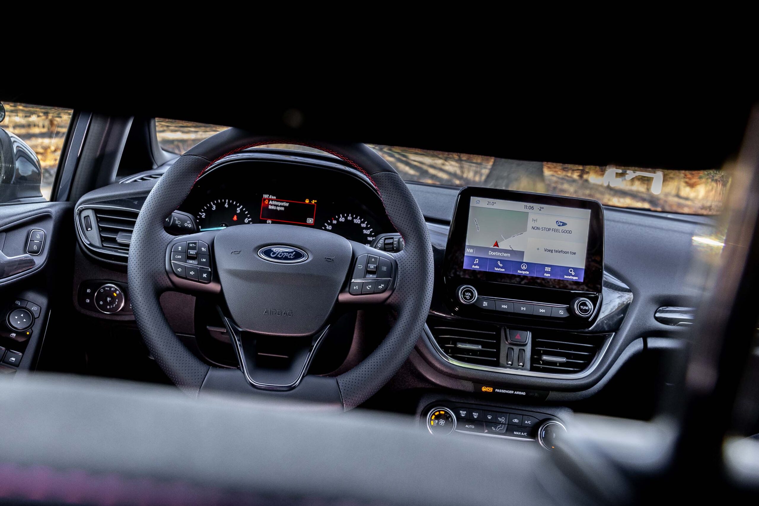 Je krijgt les in een Ford Fiësta, ST Line X. Deze compacte en sportieve auto is uitgerust met vele opties, maar het belangrijkste is dat hij lekker rijdt en goed op de weg ligt. En dat is precies de reden waarom deze auto uitermate geschikt is als lesauto!
